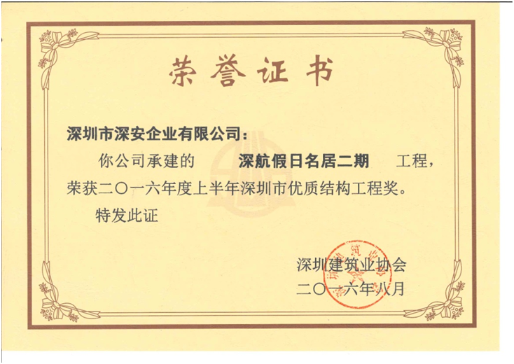深安企業(yè)獲2016年萬(wàn)科第三季度評(píng)估第一名