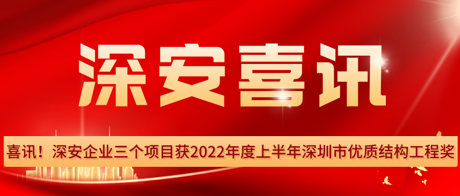 喜訊!深安企業(yè)三個(gè)項(xiàng)目獲2022年度上半年深圳市優(yōu)質(zhì)結(jié)構(gòu)工程獎(jiǎng)