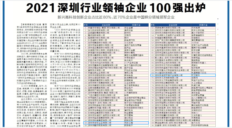 喜訊!深安企業(yè)再次入選深圳行業(yè)領(lǐng)袖企業(yè)100強