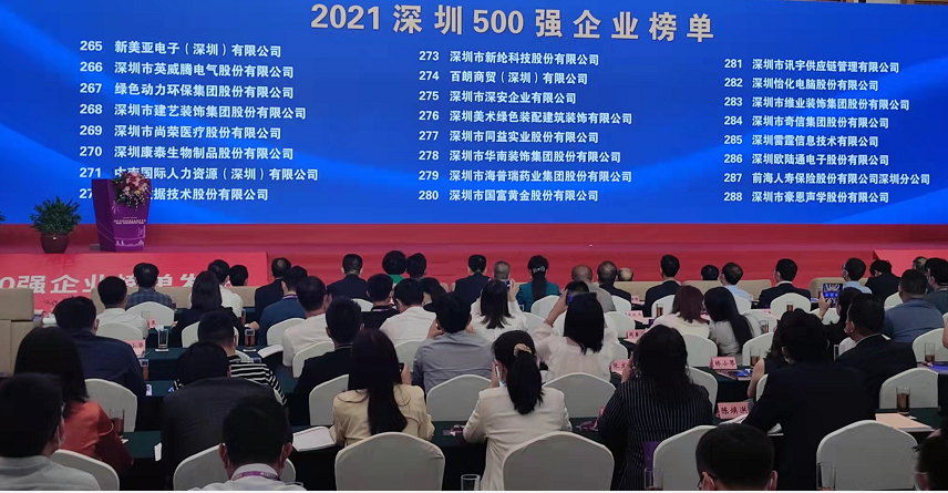 喜訊!深安企業(yè)再次入選“深圳500強企業(yè)”