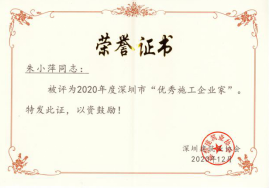 ?1月6日,深圳建筑業(yè)協(xié)會發(fā)布《關(guān)于表彰2020年度深圳市優(yōu)秀施工企業(yè)家的決定》[深建協(xié)字〔2021〕5號],深安企業(yè)朱小萍董事長和吳潮豐總經(jīng)理均獲評為2020年度深圳市“優(yōu)秀施工企業(yè)...
