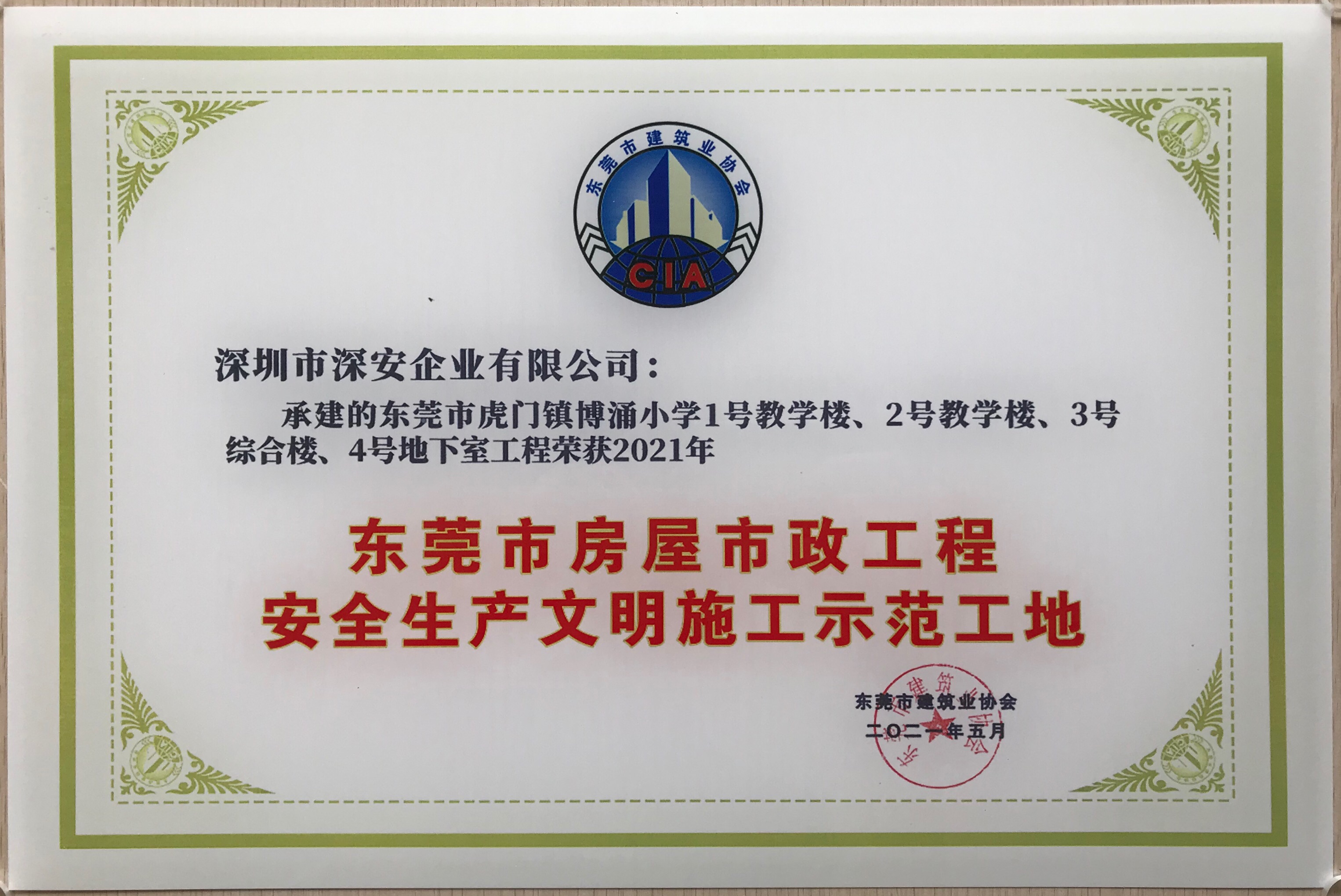 近日,深安企業(yè)承建的東莞市虎門鎮(zhèn)博涌小學(xué)項目獲東莞市建筑業(yè)協(xié)會授予的2021年“東莞市房屋市政工程安全生產(chǎn)文明施工示范工地”榮譽稱號。